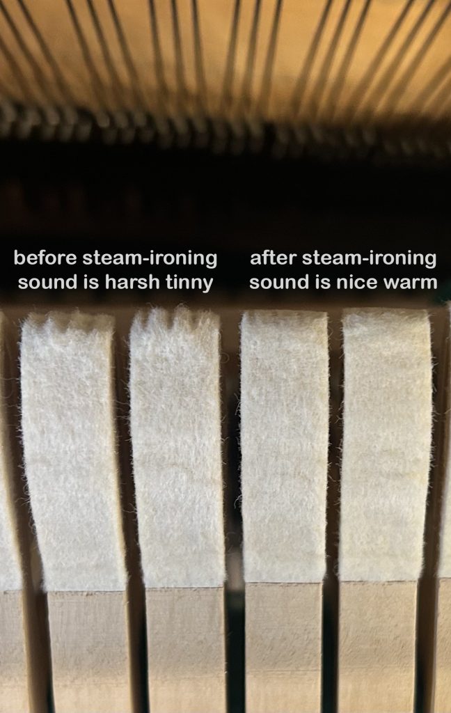 By losening up the felt with needles or reshaping the hammers with sandpaper or using steam-ironing (who still does that? Well I do), the tone of your piano can be significantly improved.